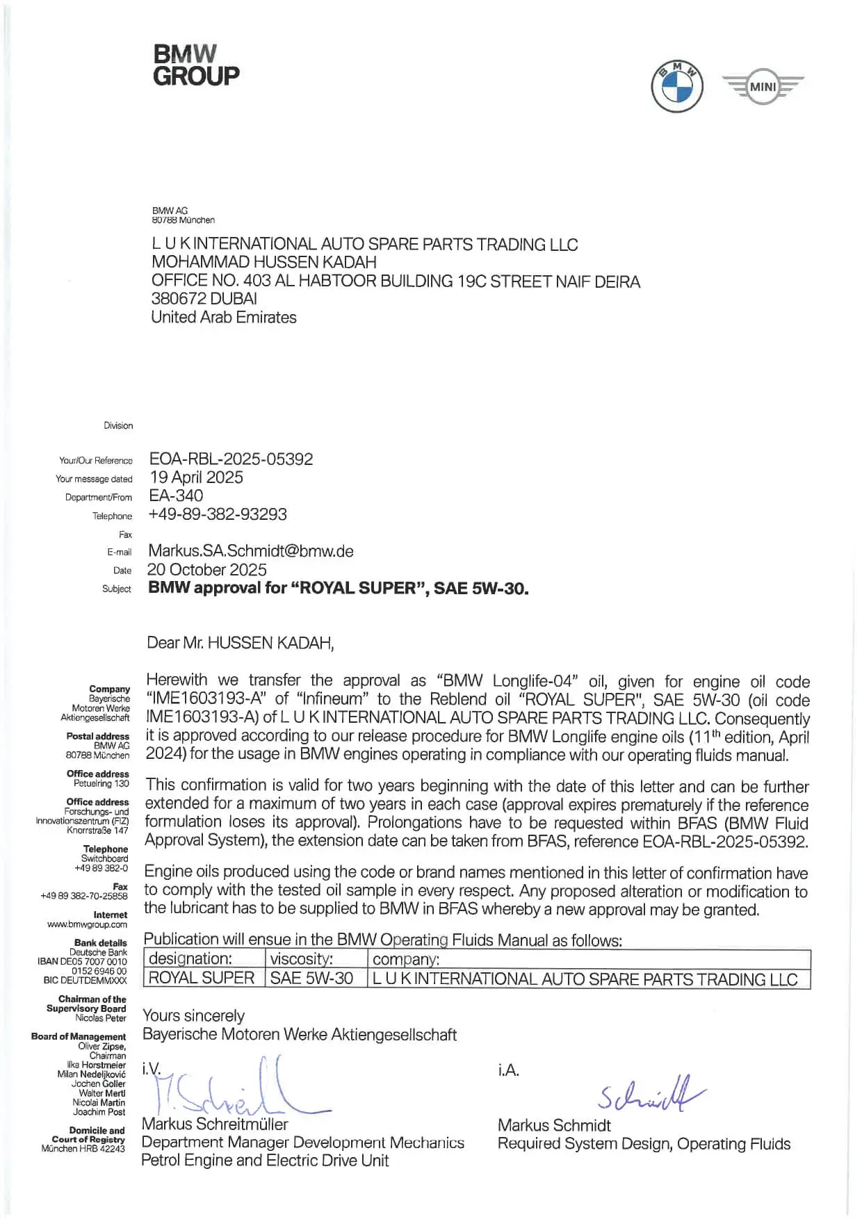 BMW approval